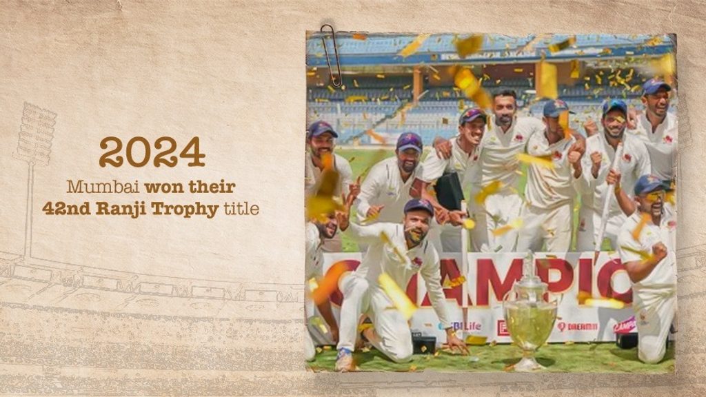 2024 | मुंबई ने 42वीं बार रणजी ट्रॉफी चैंपियन का खिताब जीता